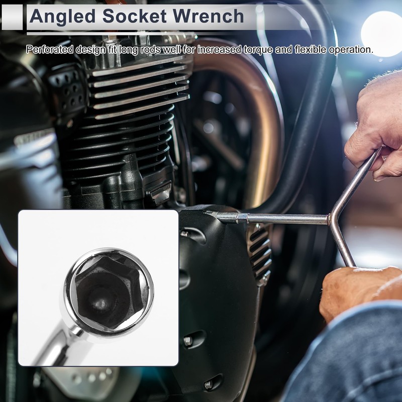 RATCHROLL 1 Pcs Universal Socket Wrench 310x90mm Spanner Socket Remover Hexagon Silver Tone Carbon Steel 19mm for Car Motorcycle Dirtbike l Shaped Wrench Sleeve