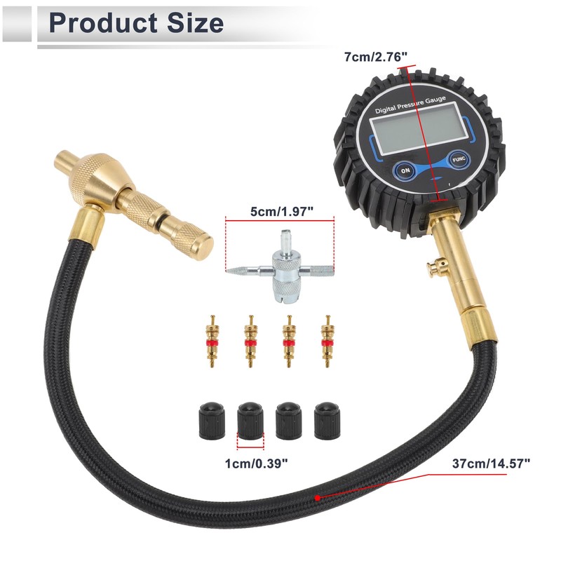 - Attribute:This air pressure gauge always returns a stable reading within 1% of the exact pressure of your tire by incredible 0.5 display resolution. The measurement range is from 0~200 PSI (0~13.8 Bar, 0~14 Kg /cm², 0~1378 Kpa)