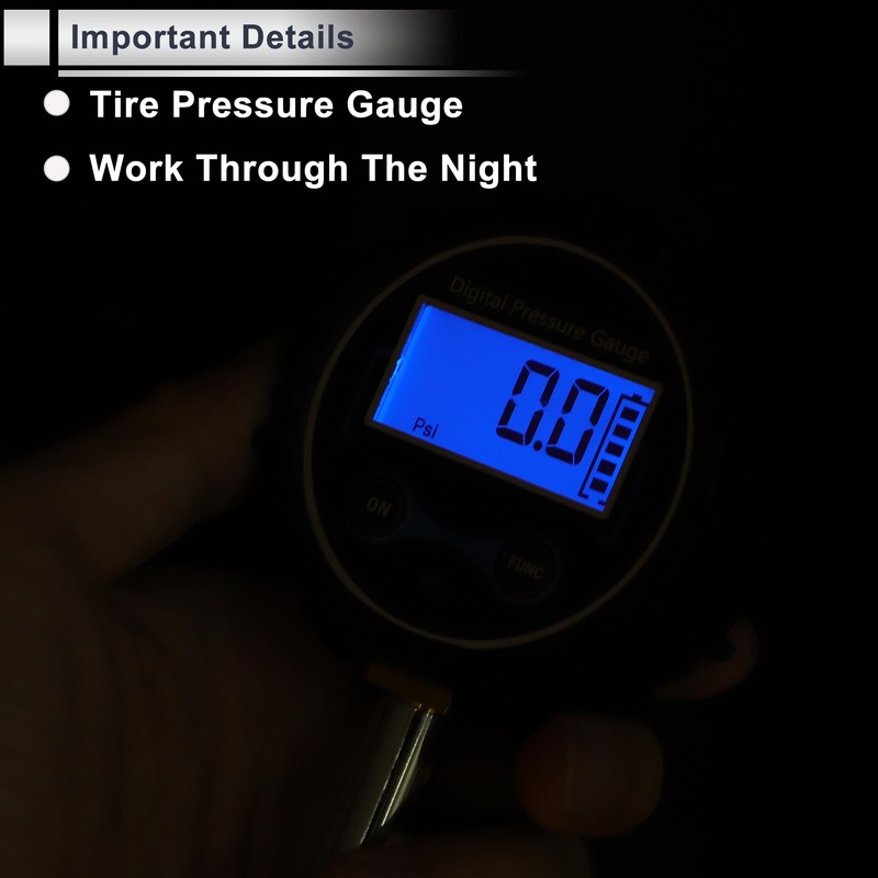 - Functionality: The tire pressure gauge includes an inflator, direct-lock chuck, pressure gauge, hose and deflation valve, all in one unit with deflation, inflation and tire pressure checking functions.