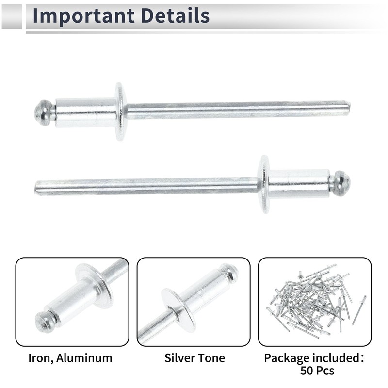 - Package Content:50(+/-2%) Pcs Dome Head Large Flange Blind Rivets