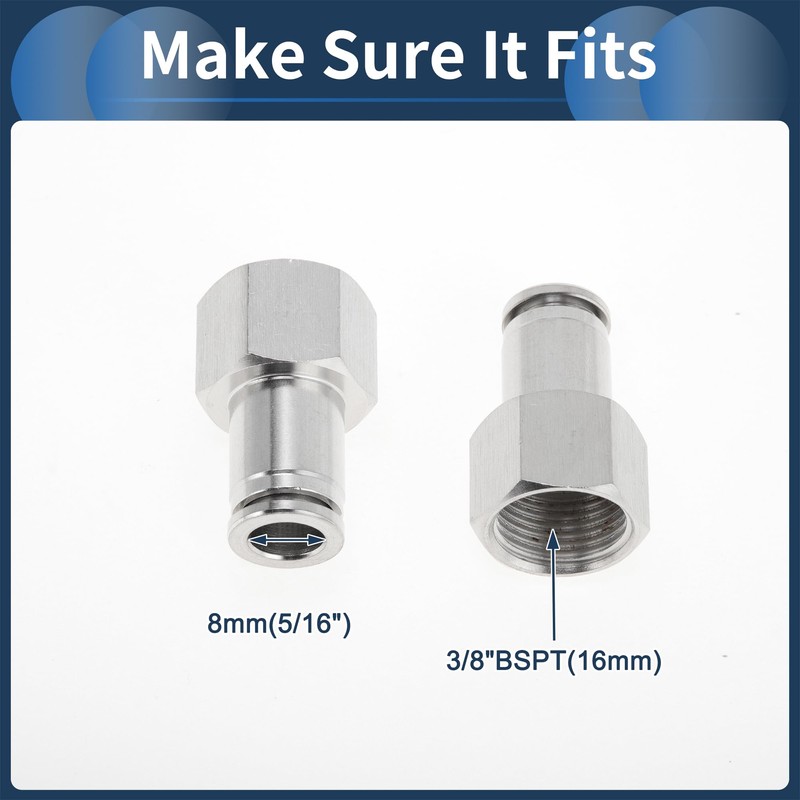 RATCHROLL Push to Connect Air Fittings 5/16" Female Thread Air Line Quick Connector 304 Stainless Steel 3/8"BSPT 2 Pcs Silver Tone