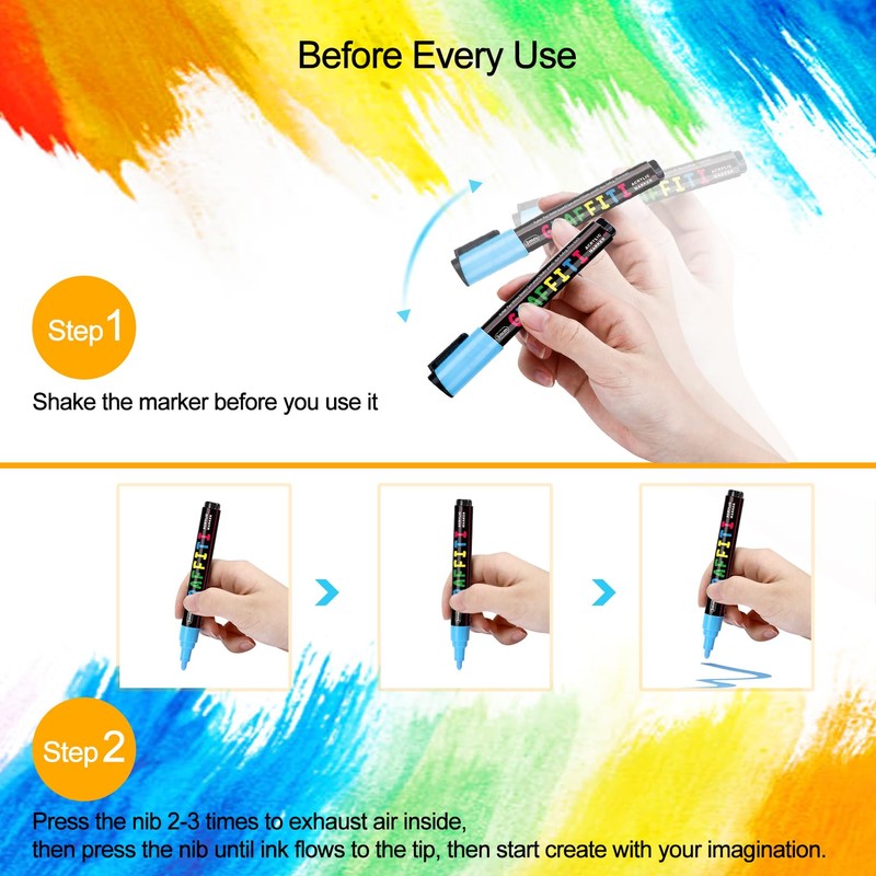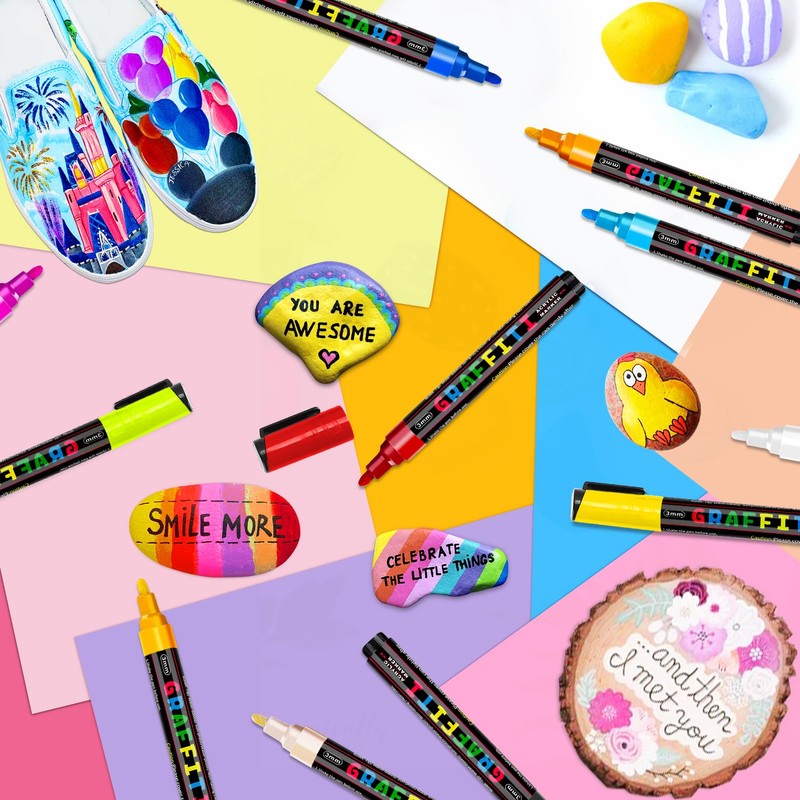 - Innovative and versatile colour markings: acrylic paint markings have been developed as the most innovative and versatile colour markings in the world. The acrylic paint pen set is perfect for decorating clothes, tote bags and shoes. DIY personalise coasters, Christmas balls, Halloween pumpkins, cup paint markers, glasses, photo album and other DIY crafts to create unique gifts for friends and family.