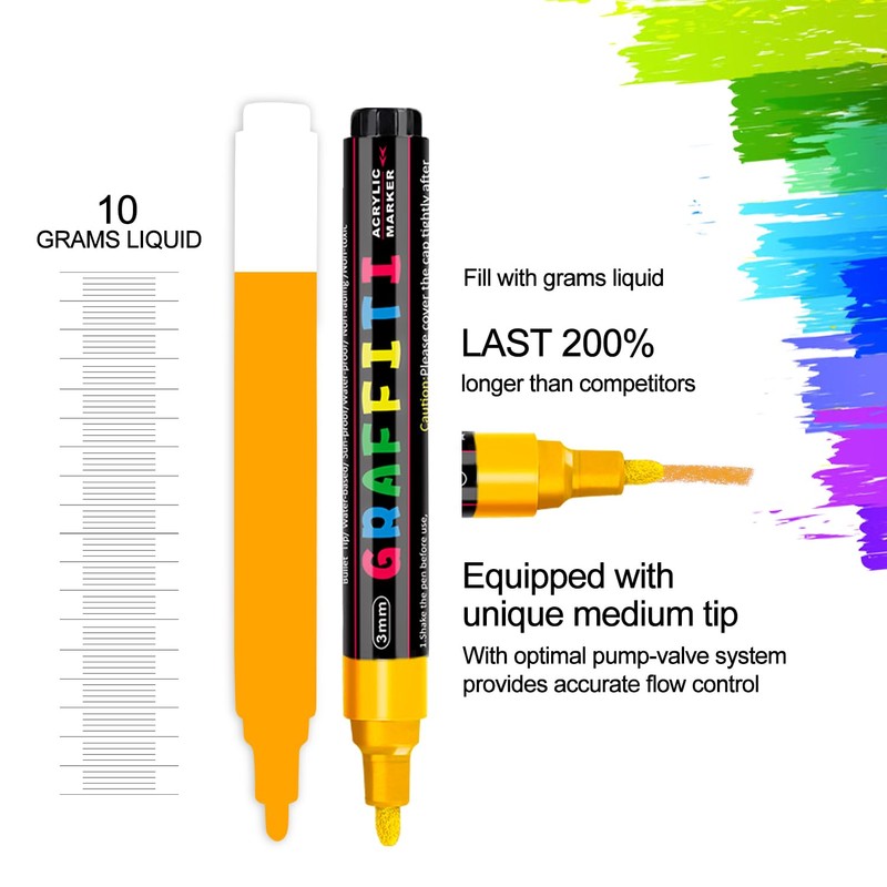 - Easy control and use: equipped with a unique medium 2-3 mm tip, an excellent design with an optimal pump valve system that provides accurate flow control. These medium 2-3 mm markings are perfect for fine details and filling large areas tips are easy to control flow on stones, paper, canvas, ceramics, wood, glass, mirrors, windows, metal, plastic, fabric, etc.