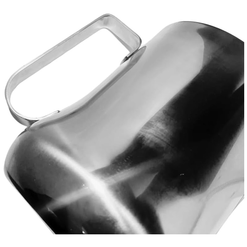 Experience precise steaming and frothing with our stainless steel bell pitcher, designed for home, cafe, restaurant, hotel, or office use. Crafted with a classic bell shape and a latte art spout, this 48 oz pitcher produces velvety foam, perfect for enhancing the presentation of your beverages. Its ergonomic handle ensures comfortable handling while measuring water, frothing milk, or preparing coffee and lattes. With a generous 48-ounce capacity, this pitcher minimizes waste and facilitates quick heating for various serving sizes. Versatile in its usage, it's ideal for steaming and frothing milk for lattes, cappuccinos, and more, making it an indispensable tool for any coffee enthusiast's collection.