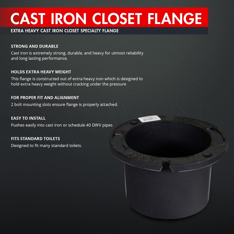 Raven DGDY2628 Extra Heavy Cast Iron Closet Flange, 4" x 6", 4” x 6”, Black