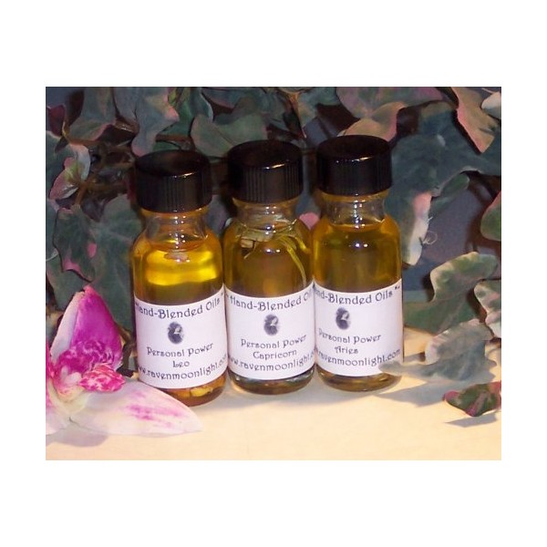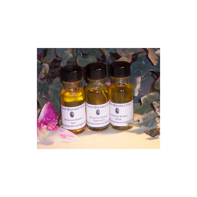 Our oils are hand blended with all natural ingredients for the freshest possible product. All of our oils come in a 1/2 ounce clear glass bottle with a black cap. All bottles are shrink sealed to maintain freshness. Our base oil is Jojoba and pure 100% essential oils in every blend. All of our oils are 100% cerified organic as well. Jojoba oil is safe to use on your skin, so you can use it as an anointing oil, add to a massage oil or burn it in an oil burner. You can also use this oil in any type of spell work. And because Jojoba is actually a wax not a vegetable oil, it has a much longer shelf life than normal vegetabled based oils, without any additives! We have 12 total personal power blends! This wonderful new product line will help empower all of the work you do regardless of intent. Whether you are looking to increase your own personal power or boost the power of a spell or meditation, these blends will help you do that and more! You can use these blends for any intent, as they will be attuned to you instead of the work you are doing - they will work with your natural energies to empower and boost all of your magickal work! Our personal power gemstone oils also contains a small gemstone as well as whole herbs and resins attuned to your particular sign to further empower you and increase the vibrations of your blend!