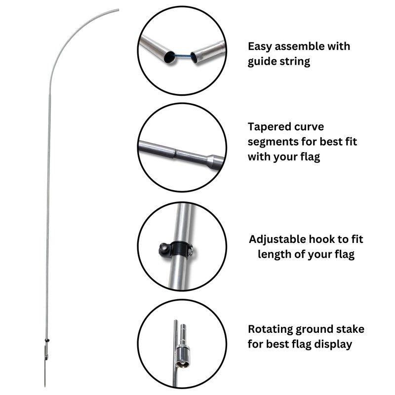 • EASY ASSEMBLY- Our patent-pending string guidance design come together in just 1 minute. Simply insert aluminum pipes of the swooper flag pole kit, no tools required. Quick, convenient and effortless.