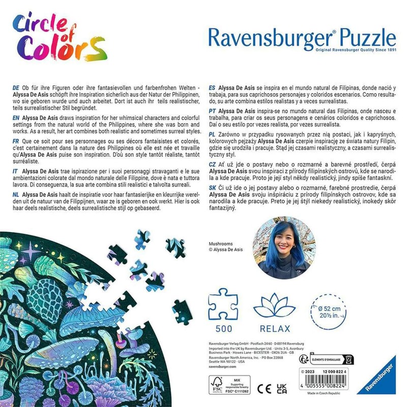 - Box contents: 1 puzzle with 500 pieces. Puzzle diameter: 52 cm. A flawless finish: thick cardboard, matte and anti-reflective surface, high-precision manufacturing tools for perfect assembly and less sharp contours. Each piece has a unique shape to guarantee you an optimal mounting experience.