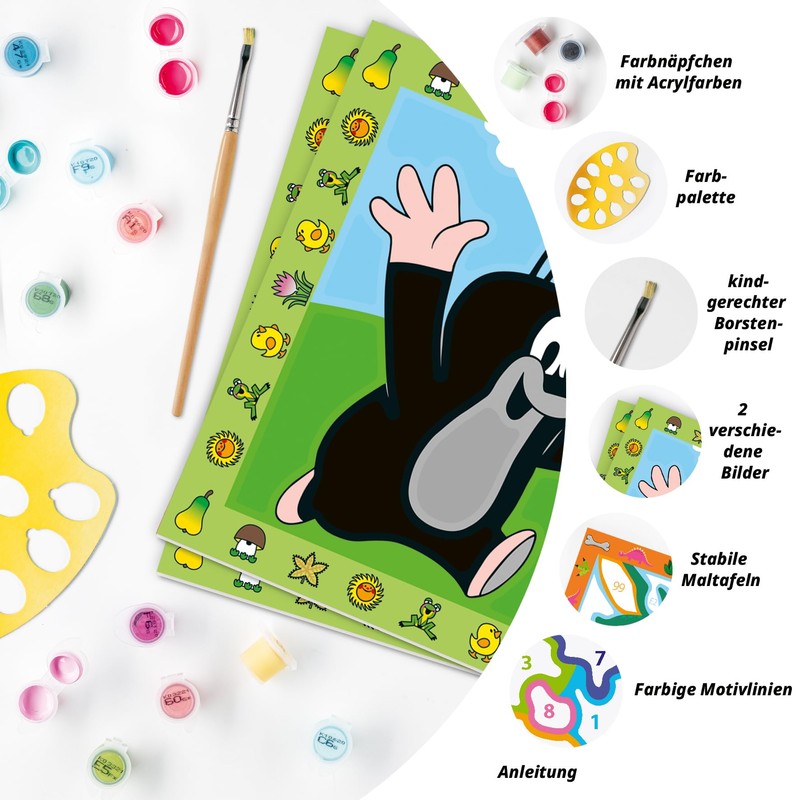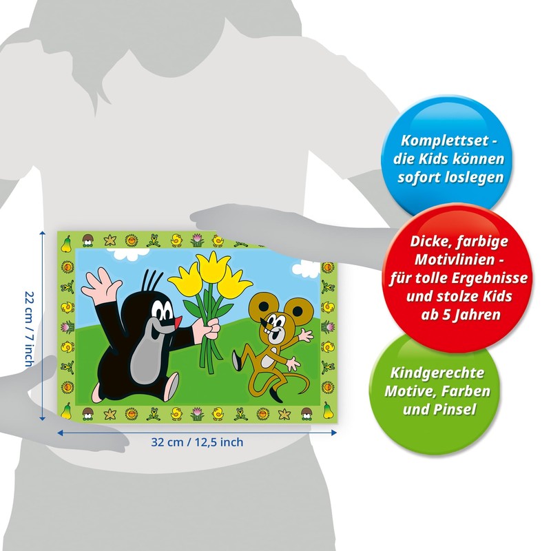 - Great colouring fun with children's favourite motifs: the funny mole makes children's eyes light up and is therefore the ideal gift for small and large artists