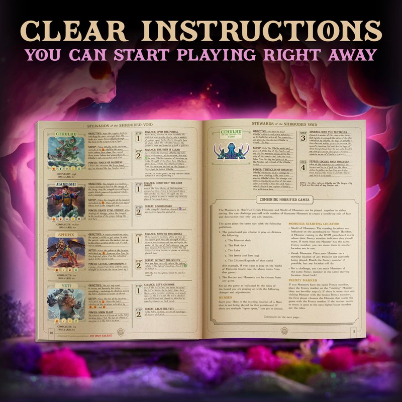 - IMMERSIVE GAMEPLAY C Sculpted miniatures capture Sphinx, Yeti, Jiangshi, and Cthulhu in exquisite detail. The devil is in the details with rich illustrations and bits of lore about this unique doorway between worlds and its mysterious stewards.