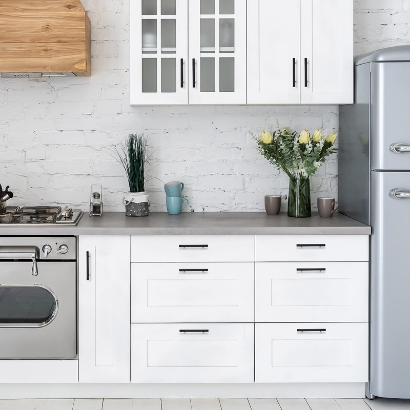2. No matter the style of your space, find black kitchen cabinet handles that elevate the look of dressers, chests and more. Modern yet approachable, this design of 4-1/2 in black pulls for cabinet handles gives your kitchen a contemporary update.
