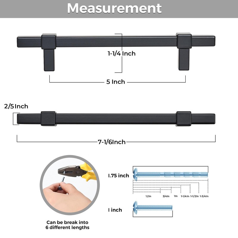 • Simple Installation: The cabinet handle is designed for quick and easy installation, with clear, detailed instructions. Each pull includes two sets of screws (2*25mm and 2*44mm detachable screws, which can be broken into 6 lengths)