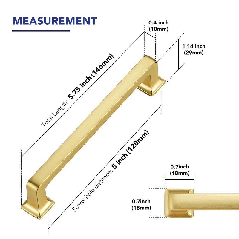 • Dimension: Overall Length:5.75 inch(146MM); Hole Centers(CC):5 inch(128MM); Width:0.4 inch(10MM); Projection:1.14 inch(29MM)