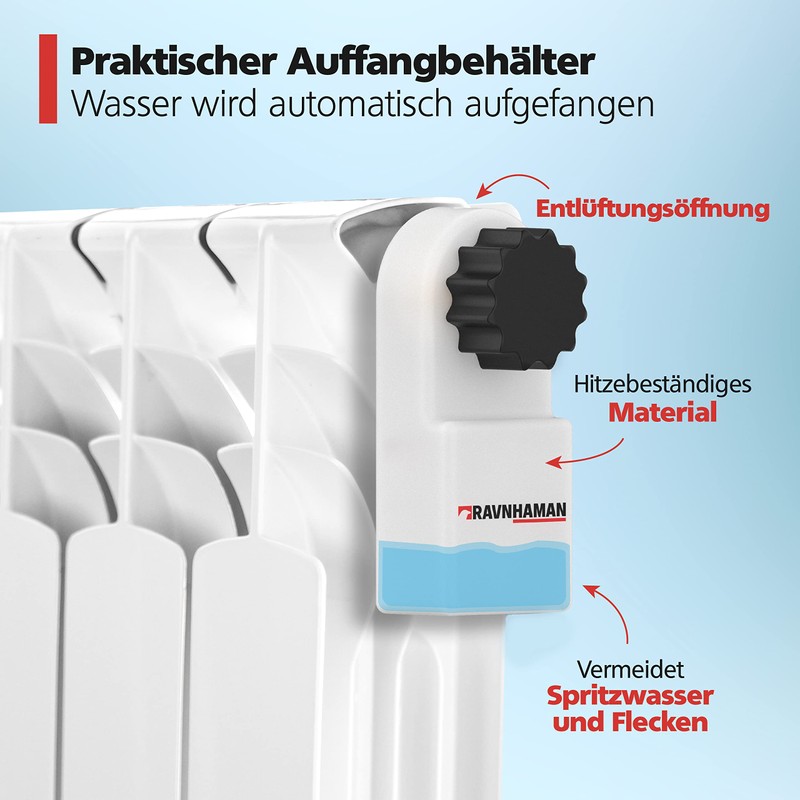 RAVN HAMAN Heater bleeder with practical collection container, vent key, 5 mm square, heating key for all standard radiators, easy to bleed heaters