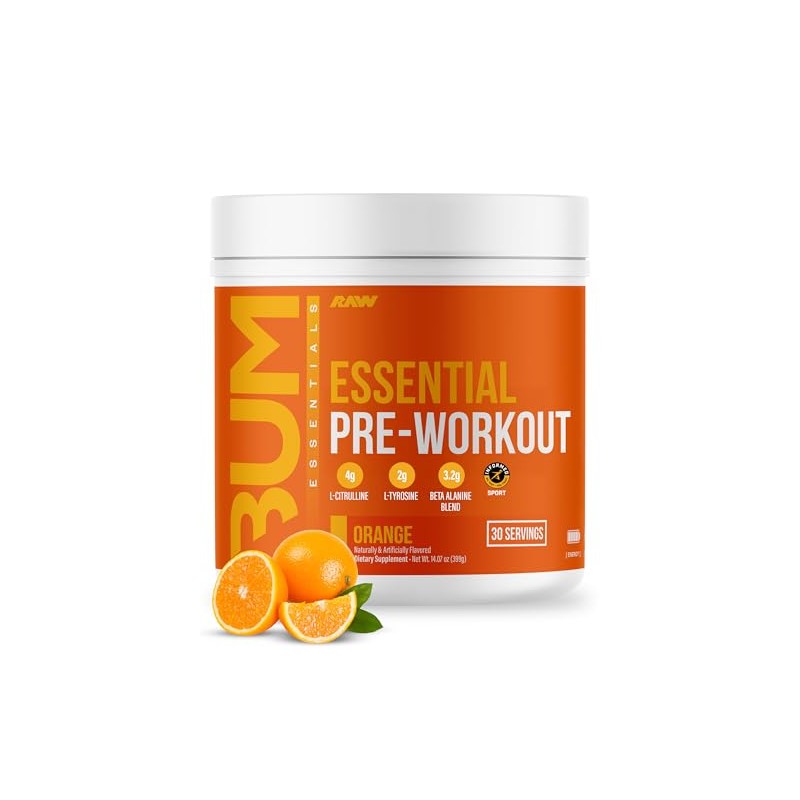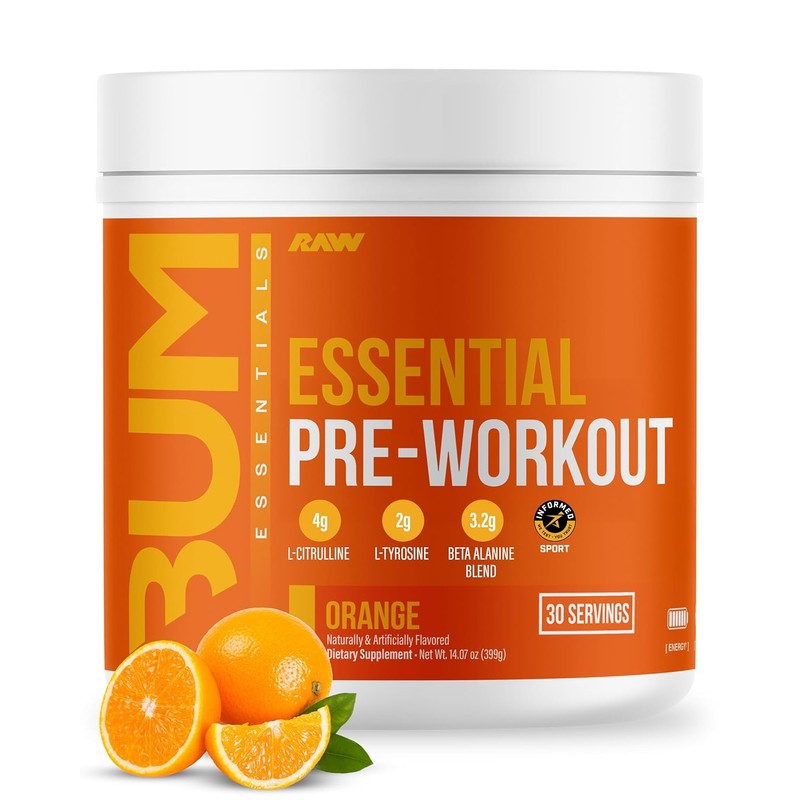 Raw cbum essential pre workout pre entrenamiento 30 servicios sabor naranja