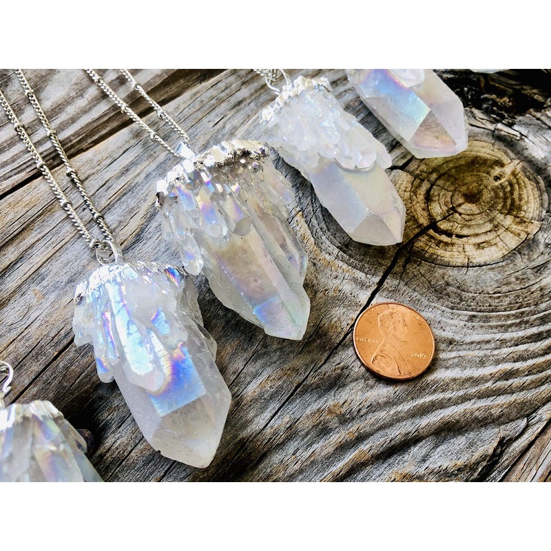 Raw crystal necklace Angel aura quartz necklace Healing crystal necklace Aura quartz crystal pendant silver plated