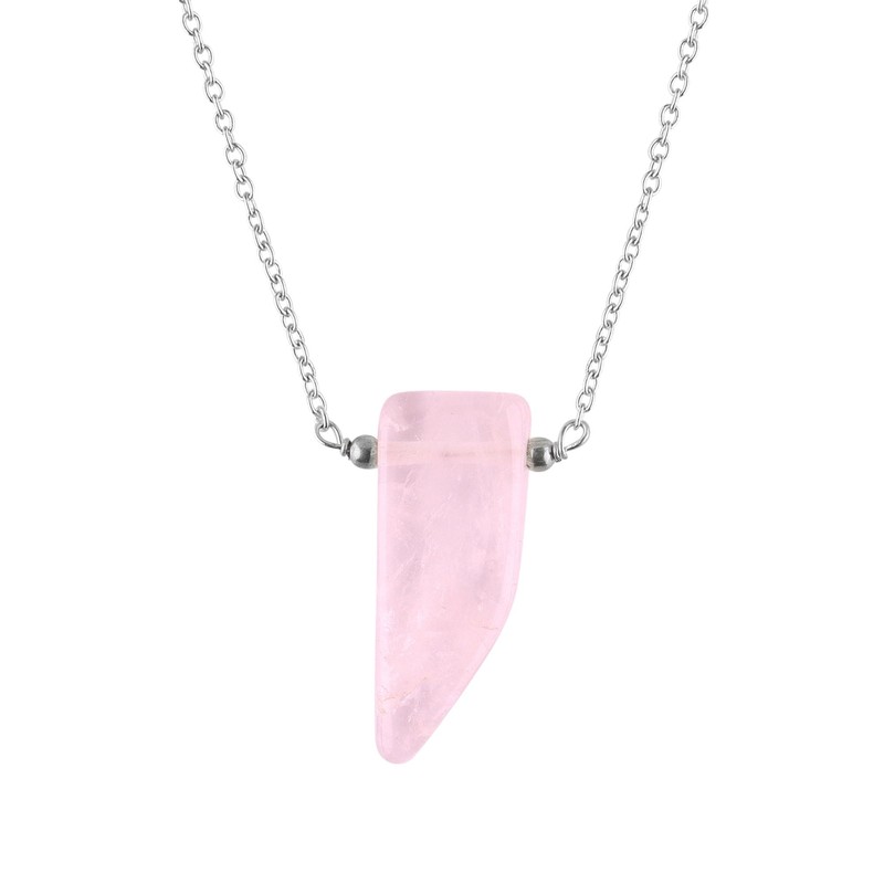 | Material Type: | crystal, Gemstone: Natural Rose Quartz (Rough Slice), Gemstone Size: Approx. 15–20 mm, Metal: Silver-Plated, Chain Length: Approx. 18 inches |