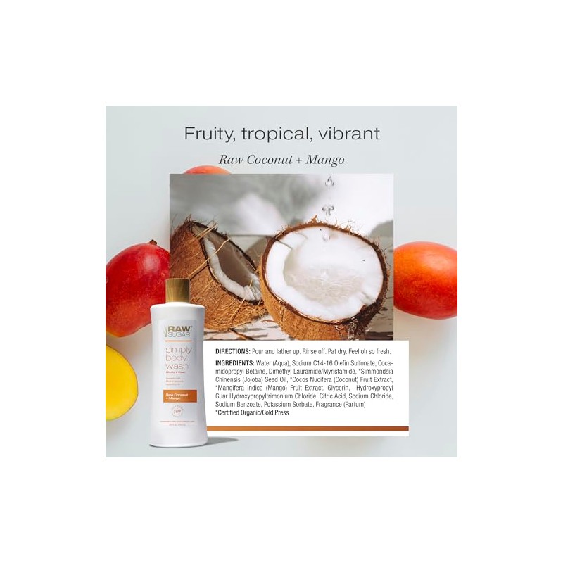 RAW SUGAR - Raw Sugar Raw Coconut Mango Natural Body Wash 25oz. 💯 Autenticidad y máxima durabilidad comprobadas. Diseño ergonómico y funcionalidad excepcional. ⭐ Miles de reseñas positivas. Ideal para quienes buscan lo mejor en calidad y estilo. Producto auténtico con satisfacción total asegurada. ¡No te quedes sin el tuyo y aprovecha esta oportunidad única!