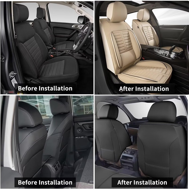 - đșăSuper ProtectionăWaterproof covers are made of premium faux leather with a five-layer construction, our front seat covers provide 360° coverage and effectively protect the seat from stains, pet hair and harmful UV rays, extending the life of the original seat, which can ensure long-lasting durability.