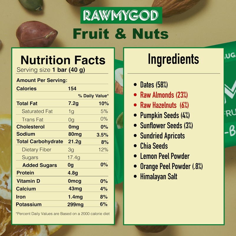 RAWMYGOD Fruit and Nut Bars, Gluten Free, Vegan, No Added Sugar (16 bars, Protein Pack - 4 Orange & Hazelnut, 4 Fruit & Nut, 4 Chia & Choco, 4 Peanut & Cacao)