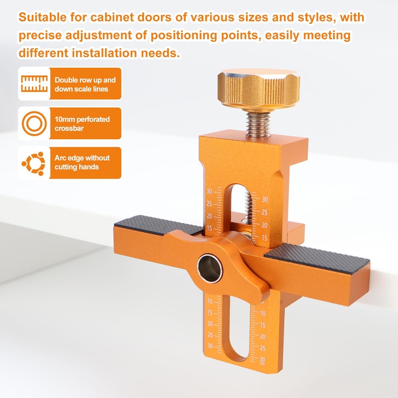 - Precisely made: Made of durable aluminium alloy, the cabinet door positioning tool provides clear measuring scales and a smooth adjustment mechanism for accurate placement of door fittings. Experience enhanced precision with this expertly engineered tool designed for both DIY and professional carpenters.