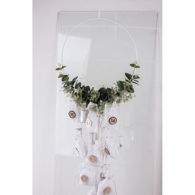 - White coated metal ring 30 cm diameter, made of iron wire, wire thickness approx. 3.5 mm