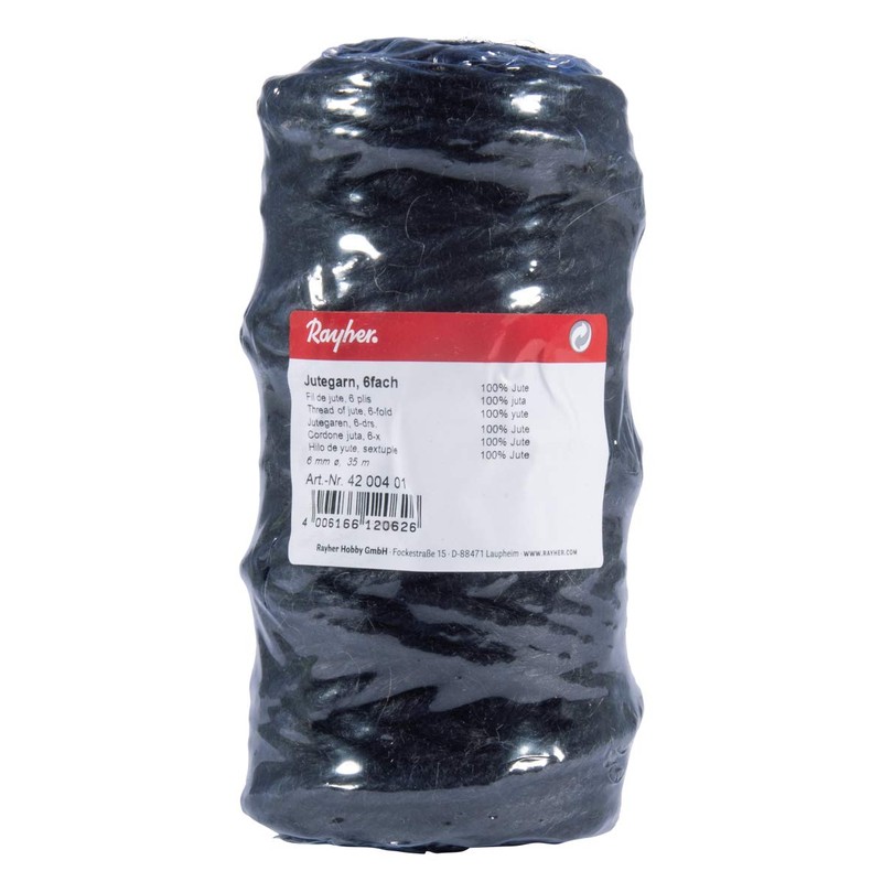 RAYHER Thread, Jute, Black, 6 mm ø. 35 m