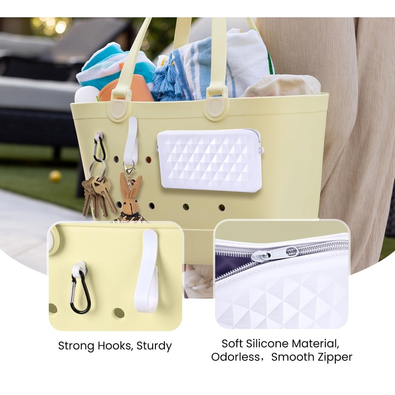 Raymall Raymall Silicone Pouch for Bogg Bag Accessories, Universal Phone Holder for Bogg Bag, Zipper Pouch Fits Simple Modern Beach Tote L/XL, Zipper Wallet Pocket with 4 Key Hooks White