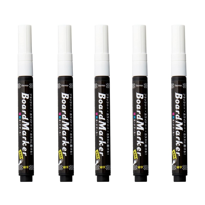 Raymei Fujii 220656 Chalkboard Board Markers, Fluorescent, Fine Point, LBM1045W, Set of 5, White