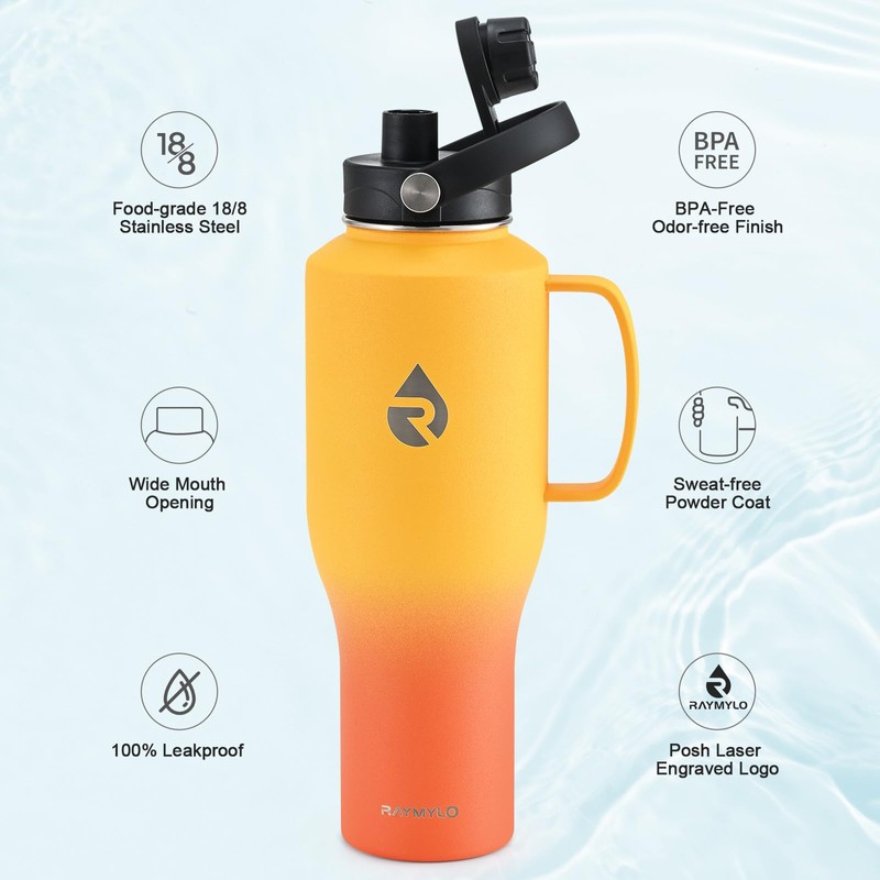 - 100% Satisfaction Support: We offer continuous after-sales service, making sure this bottle sticks around in its top game for years. Package contains 1 x RAYMYLO Car Water Bottle with Handle, 1 x Straw Lid with 2 x Straws & 1 x Straw Brush, 1 x Spout Lid, 1 x Paracord Handle