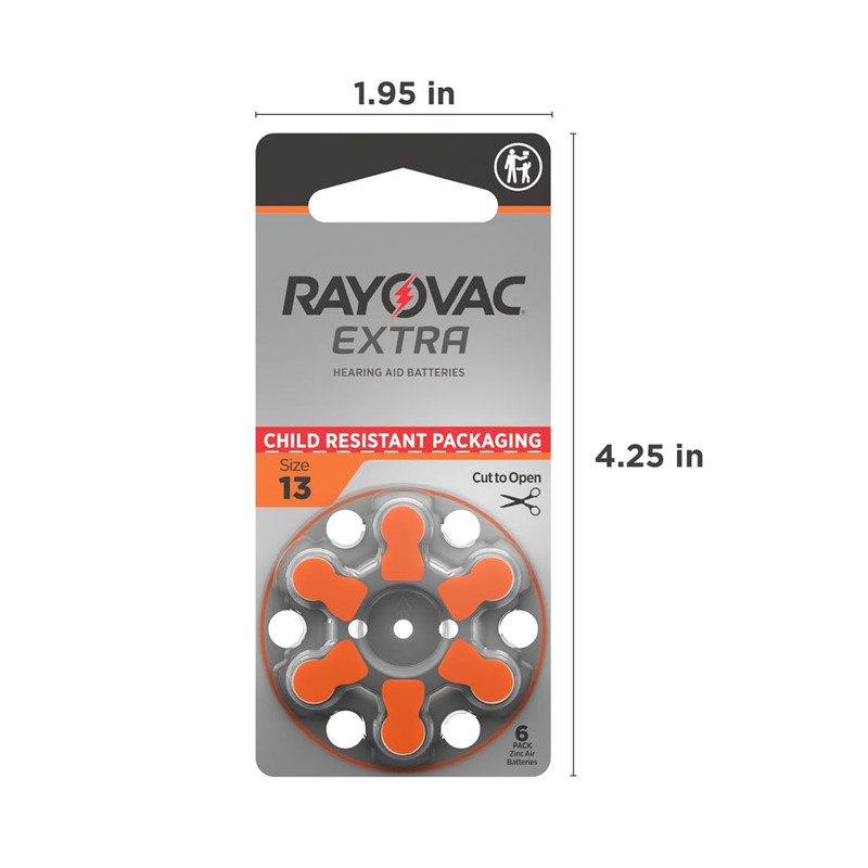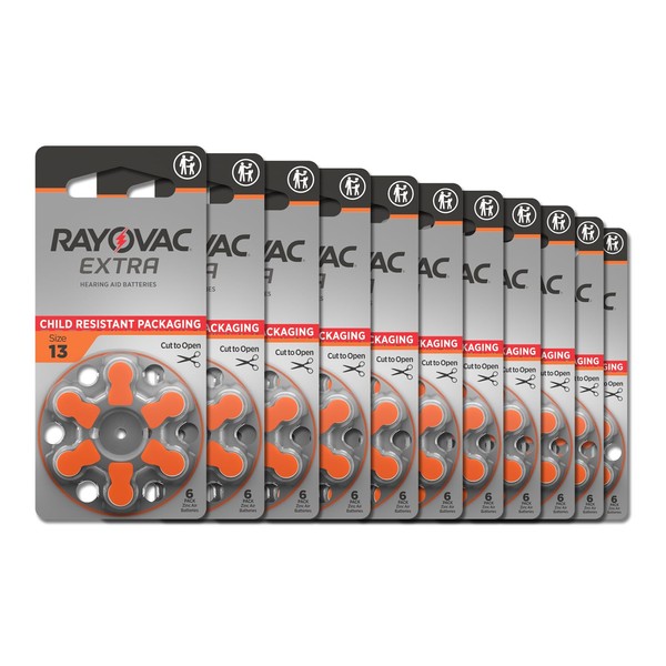 Rayovac Extra hearing aid batteries size 13. Long-lasting mercury-free zinc-air hearing aid batteries - 1.45v. (60 batteries)