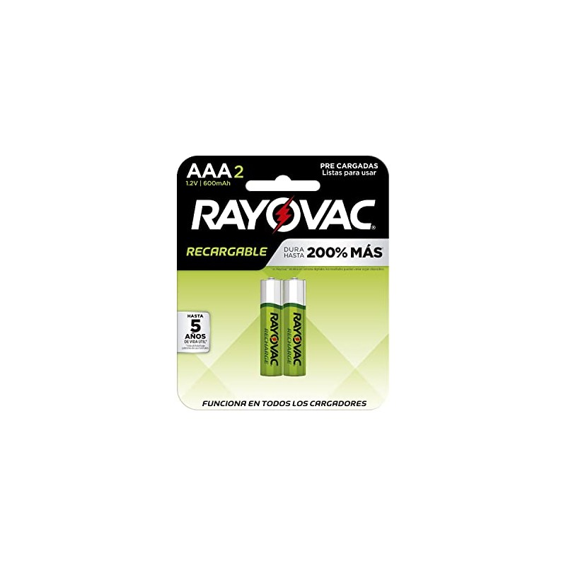 Rayovac, Pila Recargable AAA, 2 Pilas Negro/Verde