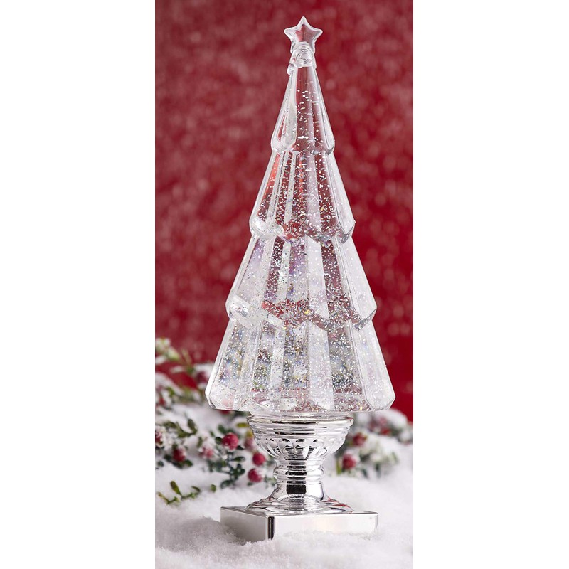 RAZ Imports 13.75" Lighted Tree Water Lantern Acrylic Snow Globe - Swirling Glitter Battery Operated