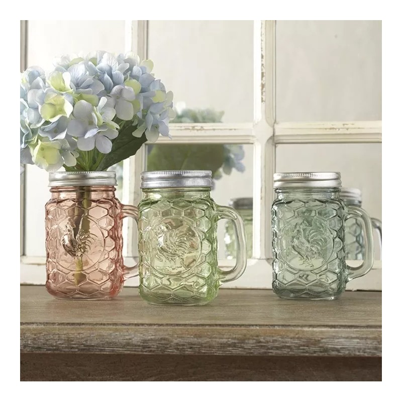 RAZ Imports NEW!~RAZ Imports~5" FARM ROOSTER GLASS MASON JAR~Set 3 ~Mug/Flower Vase/Decor