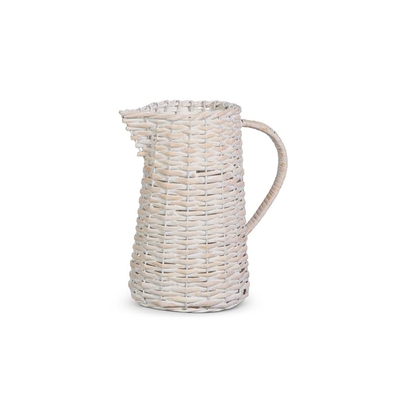 RAZ Imports Whitewash Woven Pitcher, 10-inch Height