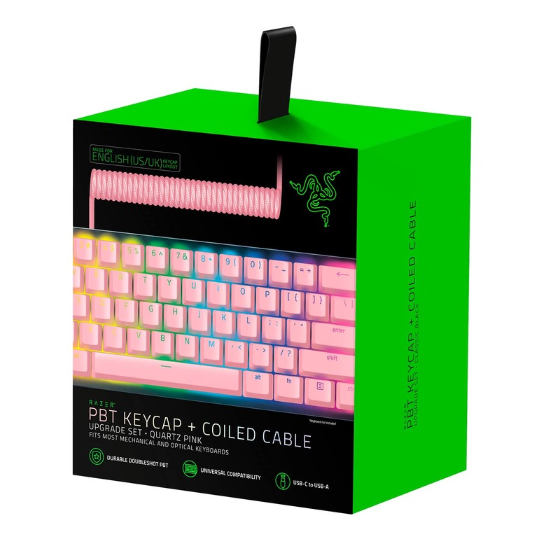 Razer Pbt Keycap Upgrade Set with Coiled Cable - Backlight Compatible (Superior Pbt Shine Resistant Material, Doubleshot Molding with Ultra Thin Font, Coiled Cable) Quartz | Us Layout