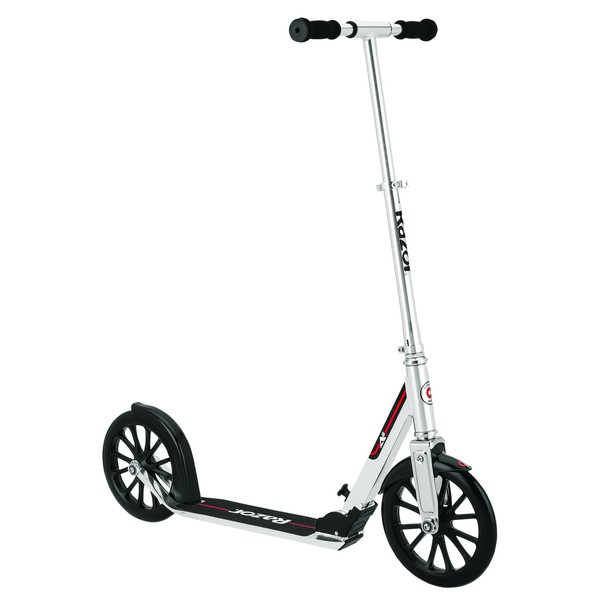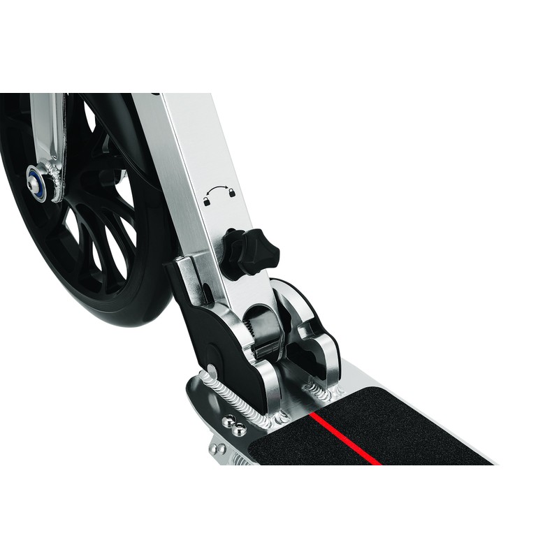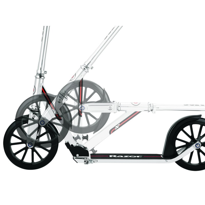 - Spoked, ultra-large 10” (254 mm), urethane wheels and super-strong, aluminum frame with patent-pending, anti-rattle handlebars and folding mechanism, ensure the smoothest, quietest ride around