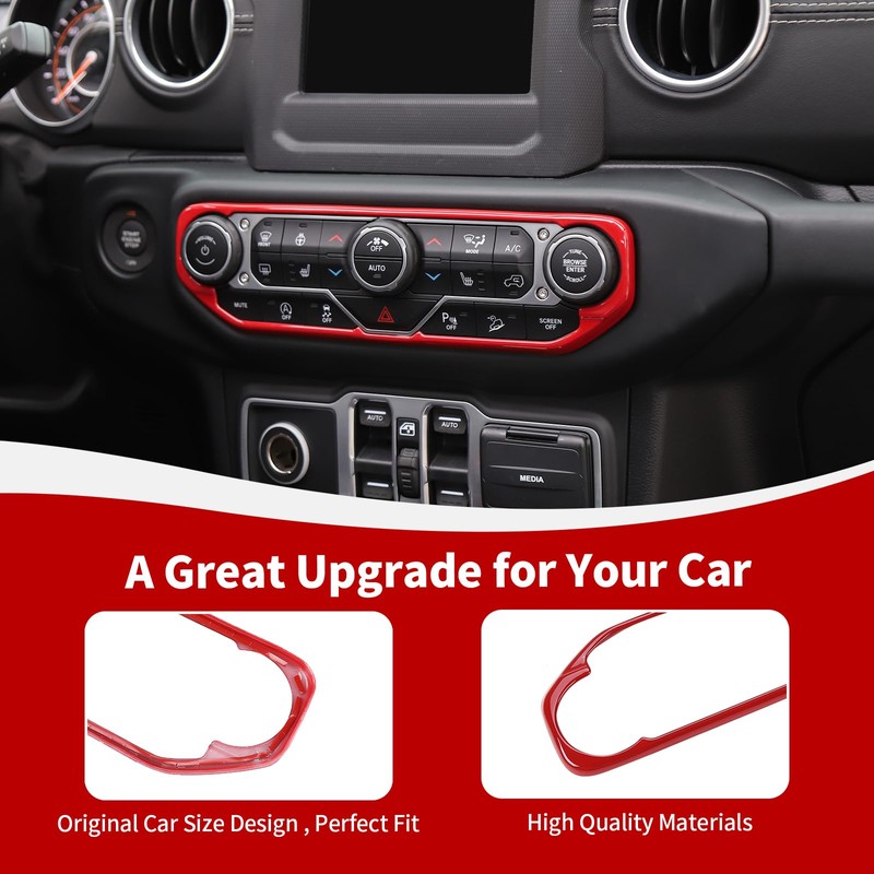 - FITMENT--Red center dash AC switch cover compatible with Jeep Wrangler JL JLU & Gladiator JT 2018 2019 2020 2021 2022 2023. (Not for 2024 up model)