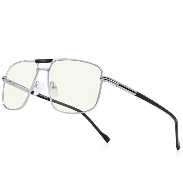 RB.Pilot Reading Glasses for Men Square Double Bridge Blue Light Blocking Computer Readers (silver, 0.50)