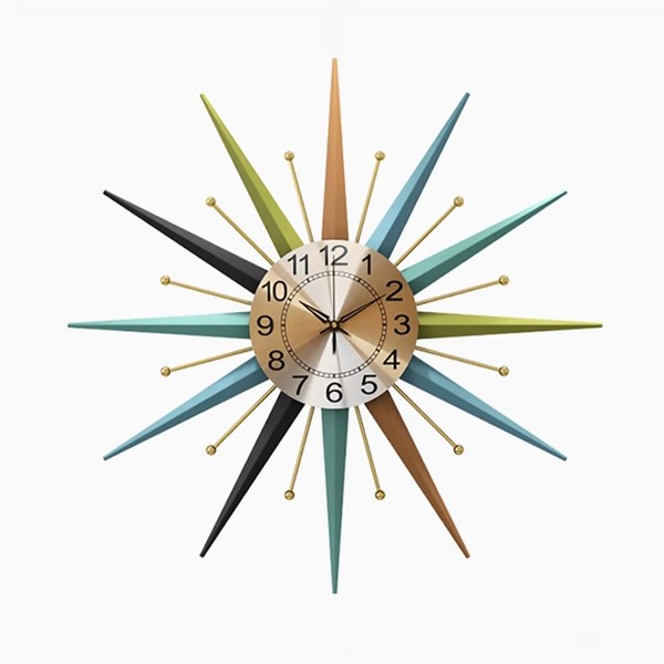RBFVZCCB 22 Inch Mid-Century Style Metal Crystal Wall Clock, Star-Shaped Silent Decorative Wall Clock, Suitable for Living Room,Bedroom,Dining Room,Porch,Office