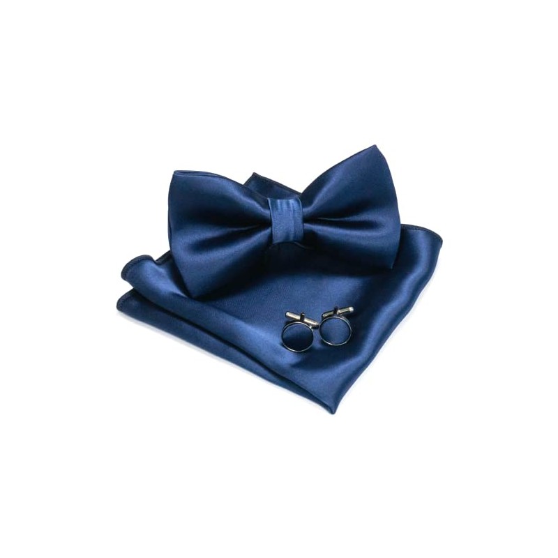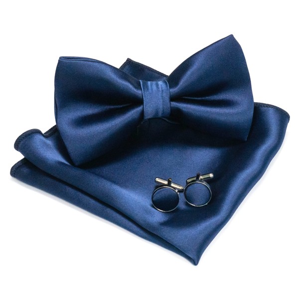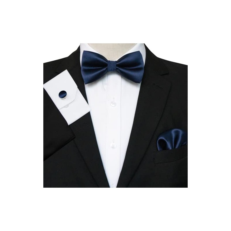 RBOCOTT Navy Blue Bow Tie Silk Bowtie and Pocket Square with Cufflinks Sets for Men