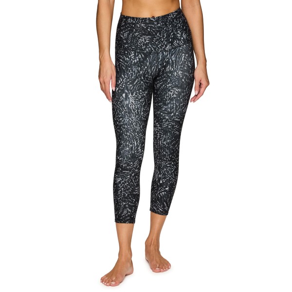 RBX Active Printed Black Capri Legging for Women Squat Proof Buttery Soft Cropped Yoga Tights Black Scratch Off S