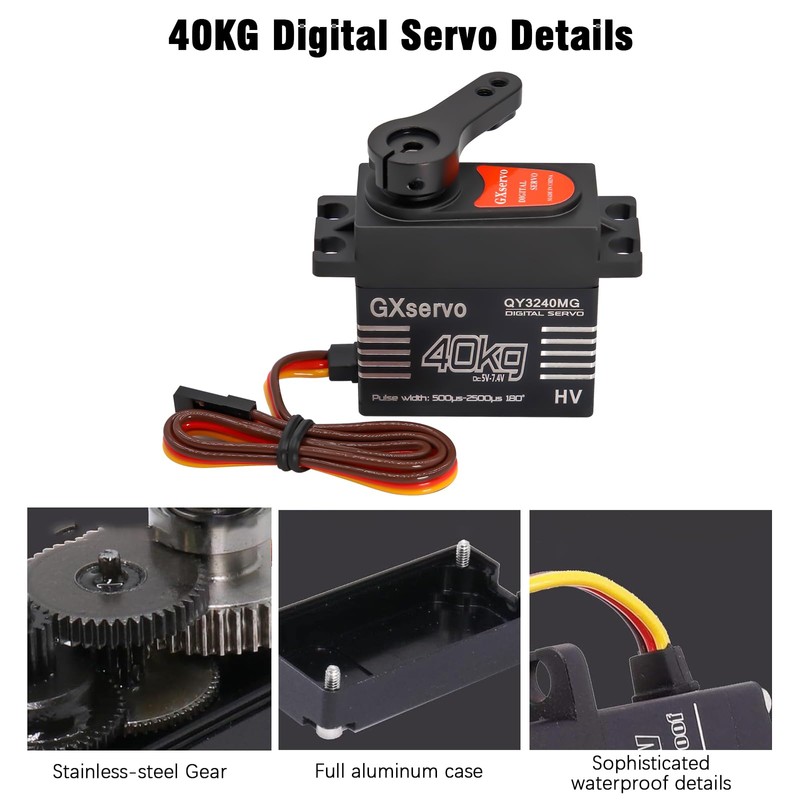 - 【Durable and Waterproof Design】: With IP65 rating, the GXservo is dustproof and waterproof, making it suitable for use in harsh conditions. Carbon fiber plastic top cover and double ball bearings increase durability.