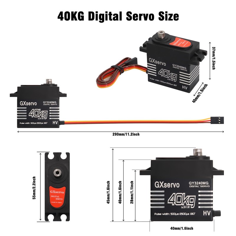 - High torque performance: The Binghe GXservo 40 kg digital servo features a hollow cup construction with high torque, servo rc for demanding applications in robotics, industrial automation and RC models.