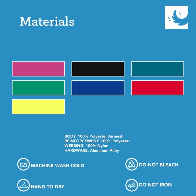 - Breathable air mesh paneling for air circulation and comfort, with reflective piping for nighttime visibility