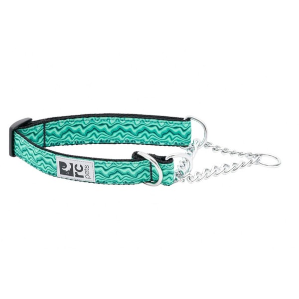 The RC Pets Training Collar is a practical and humane training tool designed to provide gentle correction while ensuring comfort and security for your dog. Unlike traditional choke collars, it features a built-in metal chain loop that creates a limited-slip martingale mechanism, tightening slightly when tension is applied. This helps discourage pulling and offers effective leash training without excessive pressure. Made from durable yet soft nylon webbing, the collar is designed to withstand regular use while being gentle on your pet’s fur and skin. It showcases RC Pets’ signature patterns for a stylish touch, while the high-quality nickel-plated metal chain ensures durability and smooth function during training. For added safety, the collar includes an RC Pets reflective label, enhancing visibility in low-light conditions. This feature makes early morning or evening walks safer by increasing visibility to pedestrians, cyclists, and vehicles. A lightweight metal D-ring allows for secure leash attachment and provides an easy spot for identification tags. This collar is intended for training and walking only and should not be left on an unattended dog or used during playtime. The chain mechanism requires supervision to function safely. Regular checks on the collar’s fit are recommended, particularly for growing dogs, to maintain comfort and effectiveness. The martingale design works best when fitted high on the neck, allowing correction without over-tightening. Machine washable on a gentle cycle, the collar is easy to maintain. Placing it in a wash bag helps protect the hardware, and it should be laid flat to dry. The RC Pets Training Collar combines function, safety, and style, making it an excellent choice for pet owners looking for a reliable and humane training aid.