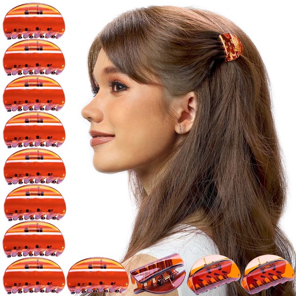 RC ROCHE ORNAMENT 12 Pcs Womens Jaw Claw Flat Clutcher Clamp No Slip Grip Strong Hold Cute Accessory Salon Styling Fashion Girls Beauty Hair Clip, Small Brown