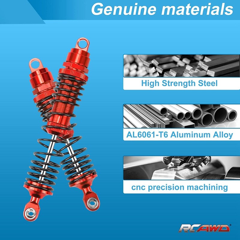 - ✔High-quality Material: The high quality design improves the performance of the rc car.The RC slash shocks made of Aluminum alloy material, which is durable and lightweight.