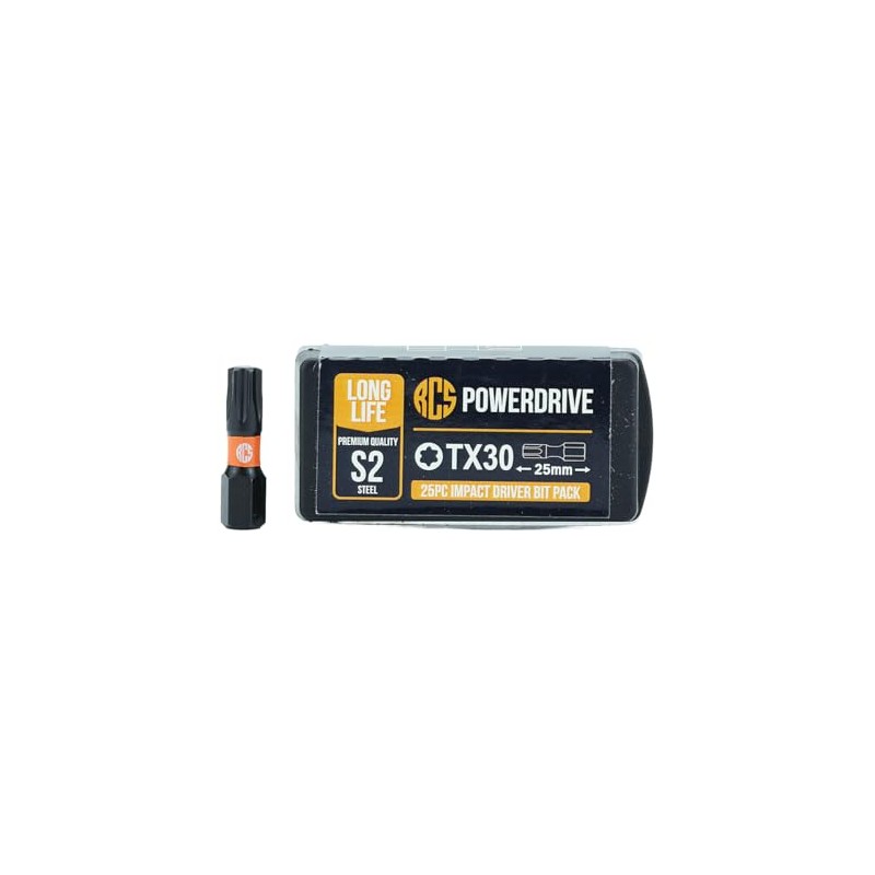 RCS T30 25mm Length Impact Screwdriver Bits (Tub of 25)
