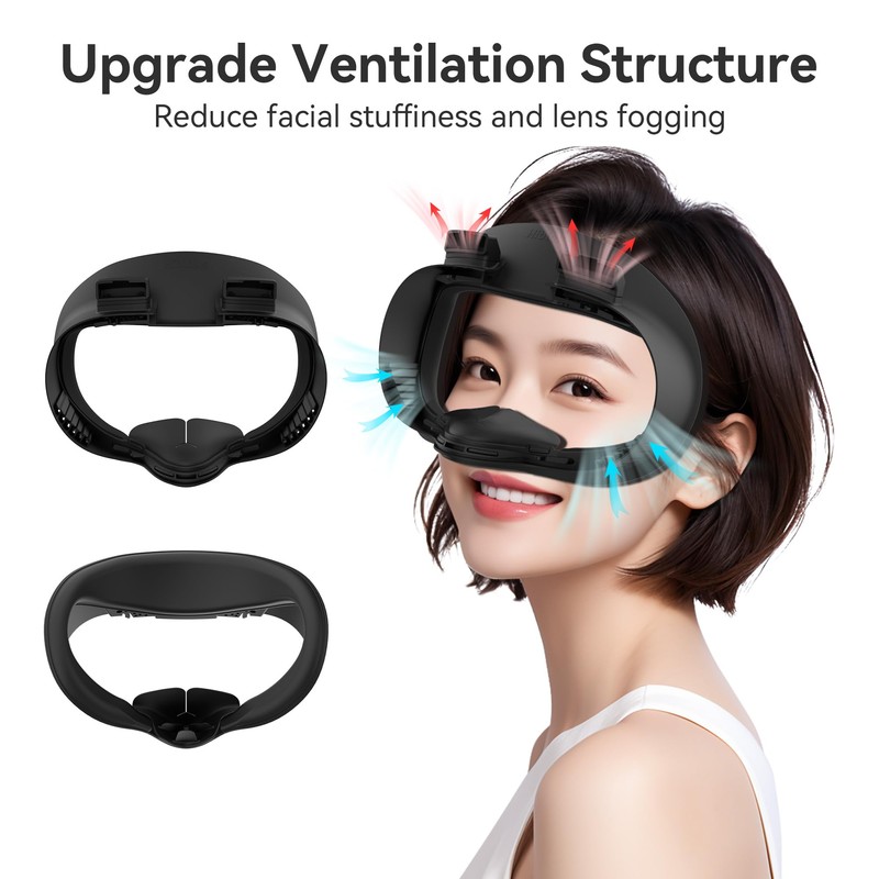 • Ventilation Structure: The facial interface is equipped with ventilation holes on the top, bottom and both sides, adopting a ventilation structure that is more in line with the principle of air circulation, reducing lens fogging when using Quest 3S, and providing a clear visual experience during gaming,Improve your gaming enjoyment